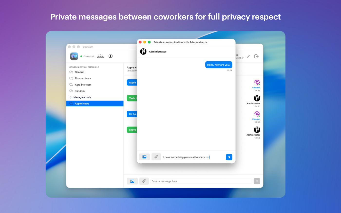 Like Slack, you can focus on a dedicated topic inside a separate windowPrivate Messages