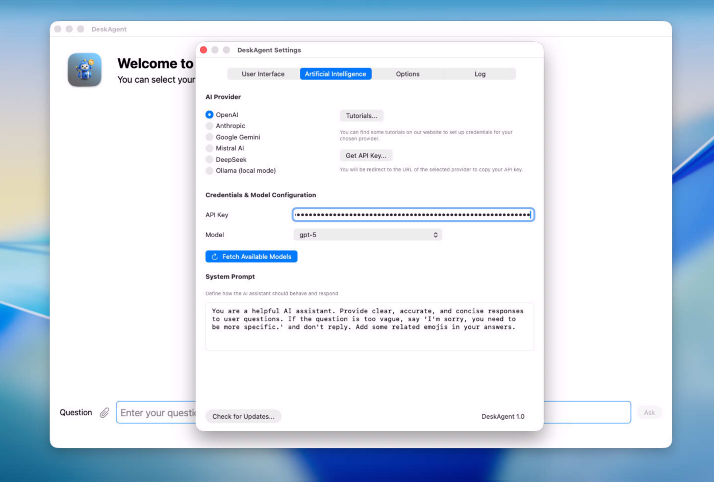 DeskAgent is a sophisticated multi-modal AI assistant designed specifically for the macOS ecosystem, offering a seamless and deeply integrated experience for users who demand both power and privacy. At its core, the application serves as a versatile bridge to the world's most advanced artificial intelligence models, allowing you to switch effortlessly between providers like OpenAI, Anthropic, Gemini, and even local instances via Ollama. This flexibility ensures that you always have access to the right intelligence for the task at hand, whether you are generating complex code, analyzing multi-page documents, or engaging in natural voice conversations.