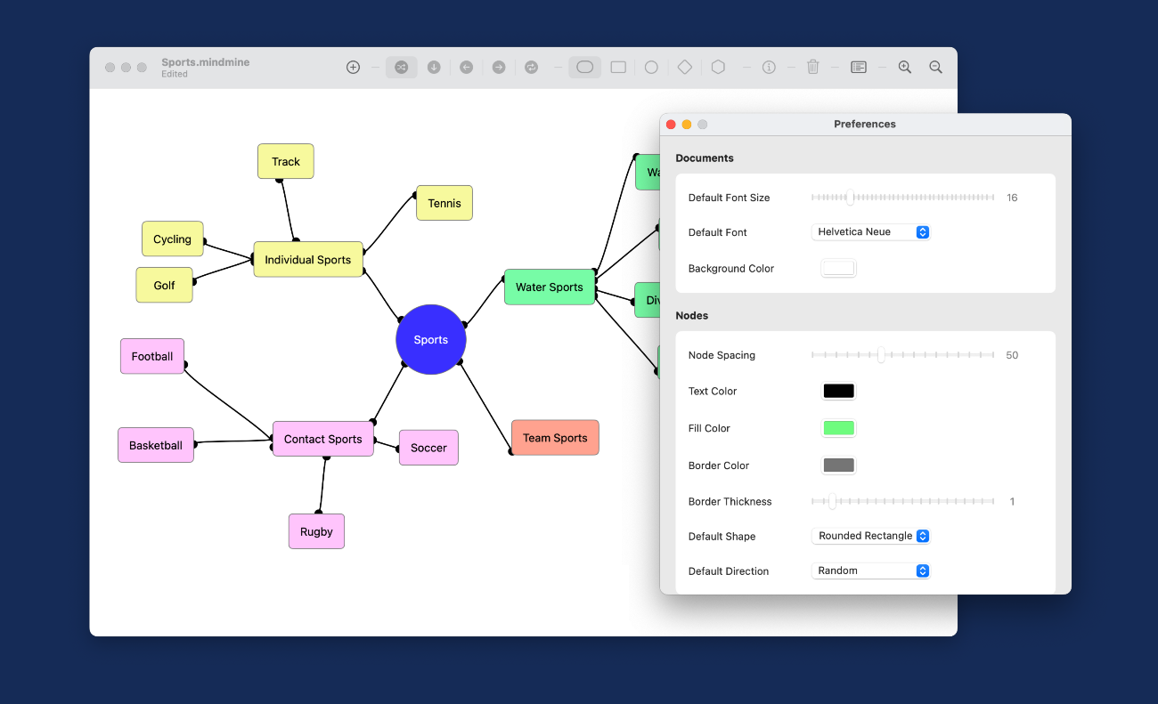 MindMine is a powerful and intuitive mind mapping application designed for macOS, offering a seamless way to organize your thoughts, brainstorm ideas, and create beautiful visual representations of complex concepts. Whether you're planning projects, studying for exams, organizing meetings, or simply exploring creative ideas, MindMine provides the tools you need to think visually and work more effectively. Built with modern SwiftUI and following Apple design principles, MindMine delivers a native, fluid experience that feels natural and responsive. The application features an elegant, distraction-free interface that puts your ideas front and center, allowing you to focus on what matters most – your creativity and productivity.