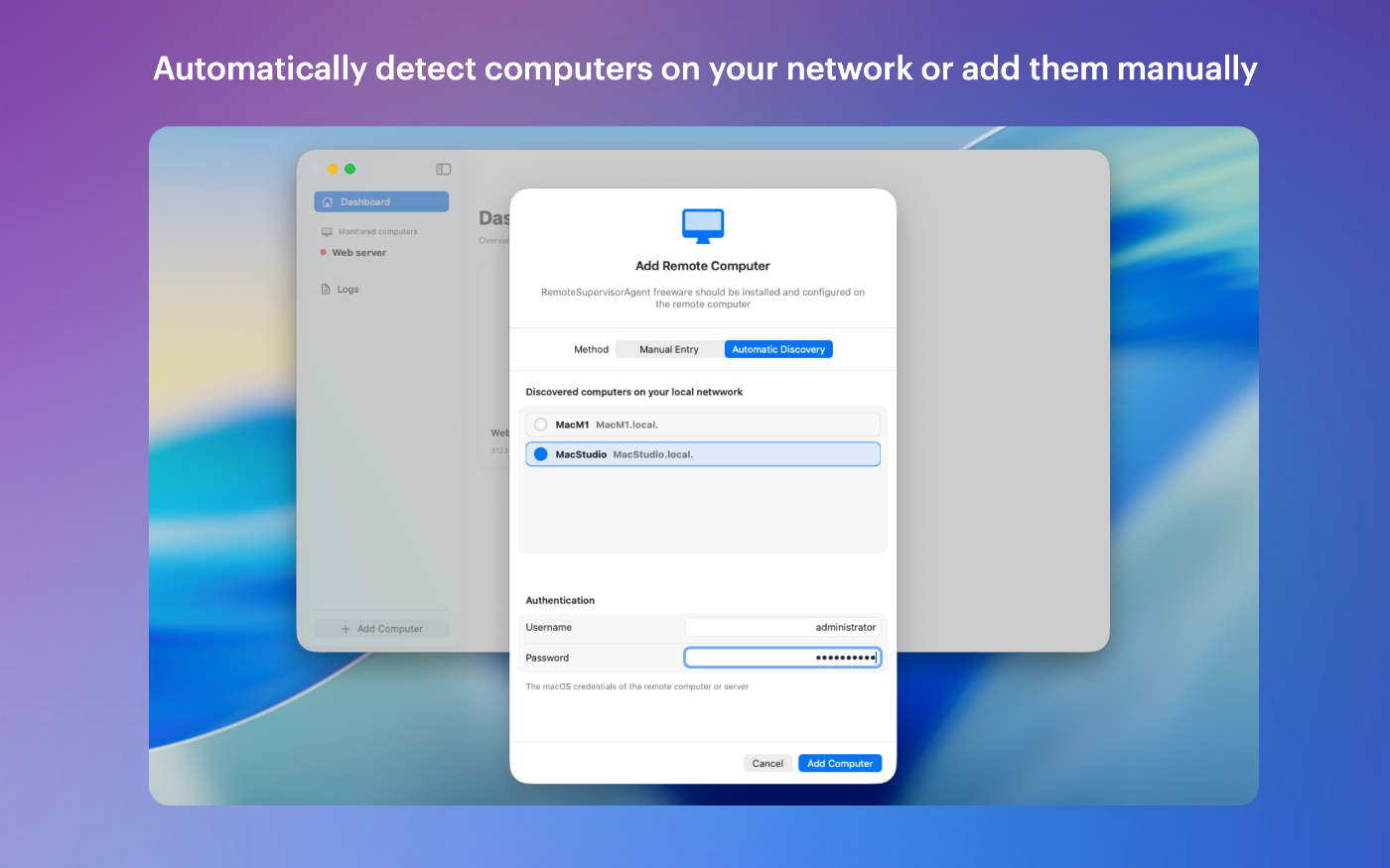 Automatic discovery of computers or servers located on the local networkFREE Agent App