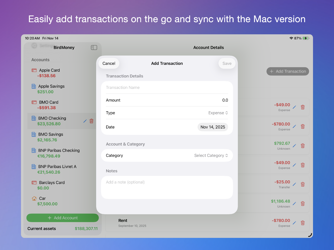 BirdMoney is the beautifully native finance app that makes your iPhone and iPad the smartest place to manage money.