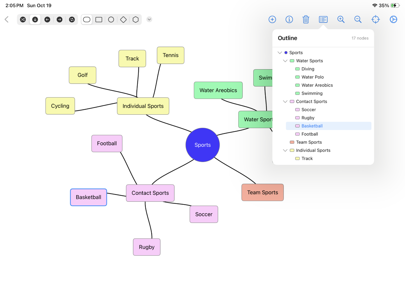 Intuitive Visual Mind Mapping Multiple Node Shapes & Styles Smart Layout Algorithms Integrated Outline View Comprehensive Inspector Panel Native iPad Experience