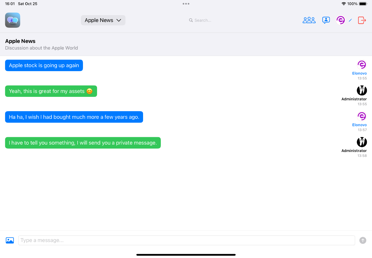 End-to-end encrypted communication using CryptoKit ChaCha20-Poly1305 - 256-bit key strengthChannels Message History