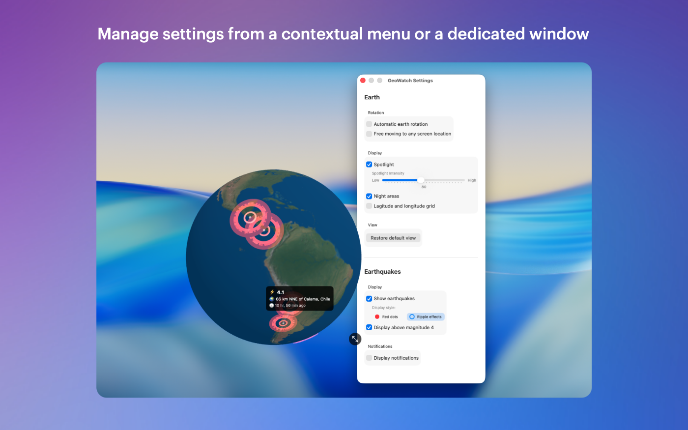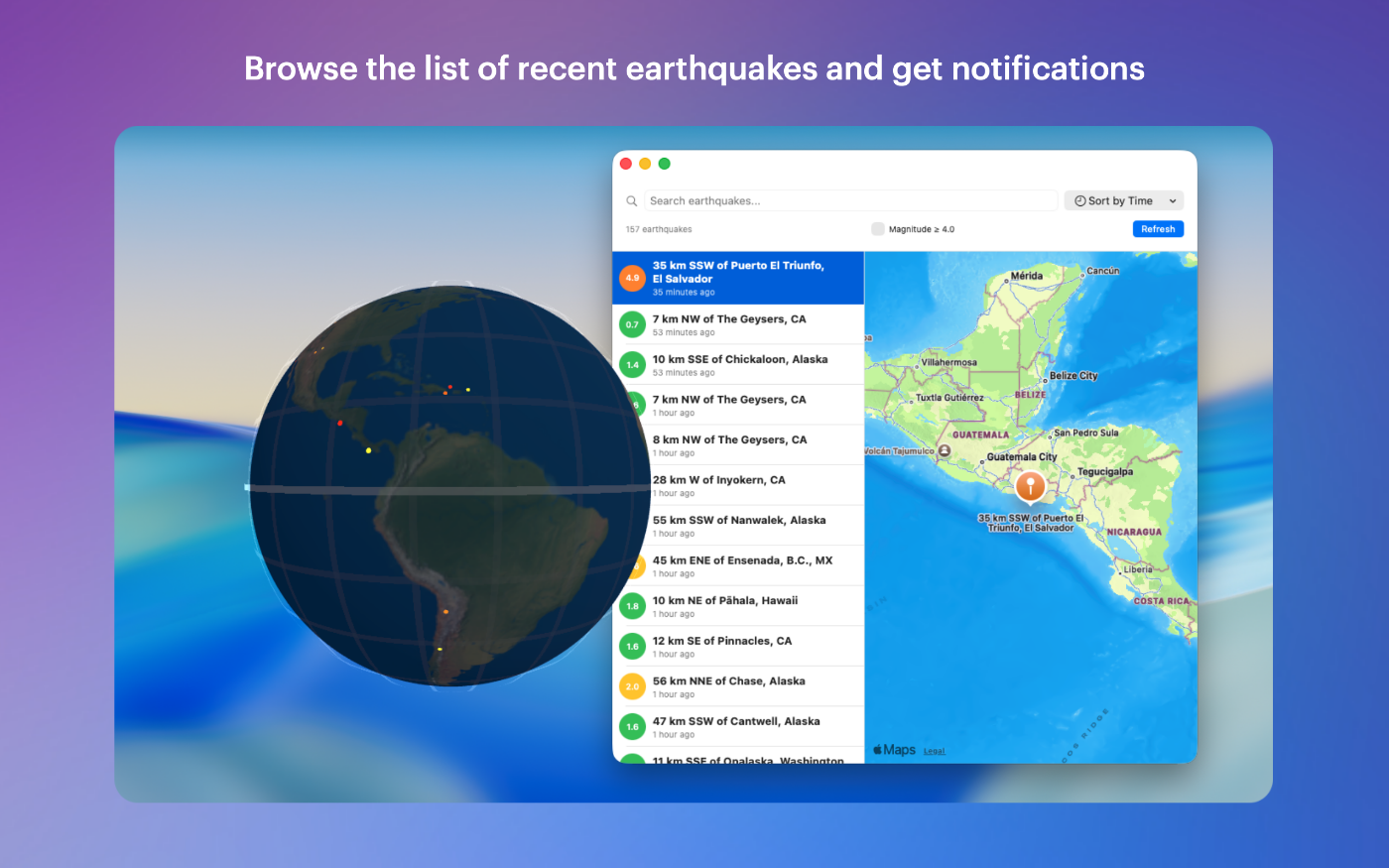 - macOS notifications for new significant earthquakes