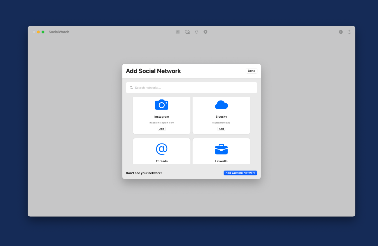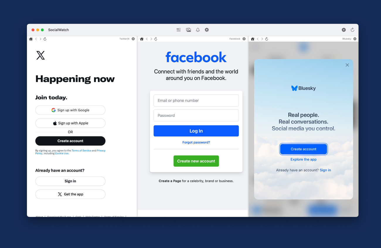 Transform your social media experience with SocialWatch, the ultimate social networks browser designed exclusively for macOS. Monitor all your favorite social networks simultaneously in one elegant, native application (formerly MultiTime).