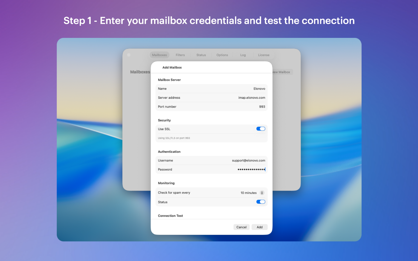 Add mailboxes in minutes, protect preferences with a password, and enable start‑at‑login.Bulk manage rules